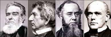 From left to right: Edward Bates, attorney general; William H. Seward, secretary of state; Edwin M. Stanton, secretary of war; Salmon P. Chase, Treasury secretary.