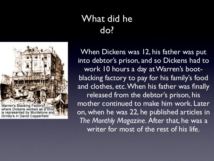 The father of the English author Charles Dickens was sent to one of these prisons (the Marshalsea), which were often described in Dickens's novels.[13] He became an advocate for debt prison reform, and his novel Little Dorrit dealt directly with this issue.[14]