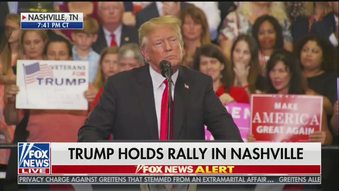 Click on following photo for video:Trump Tests Midterm Message On Immigration, MS-13 'Animals' During Tenn. RallyPresident Trump tried out his own midterm playbook Tuesday at a campaign rally in Tennessee by ramping up his rhetoric on illegal immigration and gang-related crimes.The president's main goal with the Nashville event was to campaign for GOP Rep. Marsha Blackburn, who finds herself in a close Senate contest with former Democratic Gov. Phil Bredesen that could be pivotal in deciding control of the Senate."I've never heard of this guy — who is he?" Trump chided Bredesen. "He's an absolute tool of Chuck Schumer, and of course the MS-13 lover Nancy Pelosi."